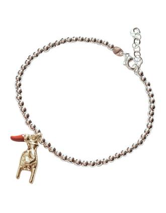 This bracelet combines the Italian horn with the blue malocchio eye, bringing you both fortune and a shield against negativity.